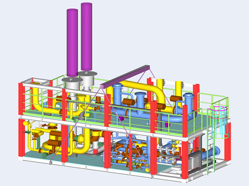 全三维设计使撬块布置在满足制造、操作和维护便利的基础上更紧凑,可以有效节省空间或土地。整套装置遵循宜撬尽撬的设计原则,每个独立撬块均包含设备、管道、钢结构、阀门和电仪的设计。撬块化将现场的安装转移到工厂,既能提高安装质量,又能缩短现场安装时间,还能避免不可控的安装成本。最后,模块化设计经过多次选代可以形成标准化,可以缩短设计周期,减少成本提高客户的竞争力。